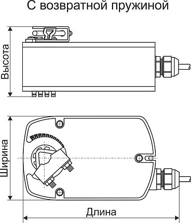 Электропривод с возвратной пружиной предназначен для управления воздушными заслонками и клапанами, выполняющими охранные функции (например, защита от замораживания).