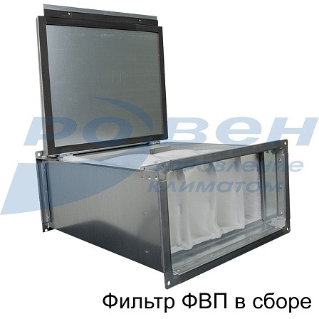Фильтрующий материал выполнен в виде сменной кассеты с мешочными фильтрами из синтетического волокна и имеет класс очистки EU3. Швы кассеты термически спаяны.