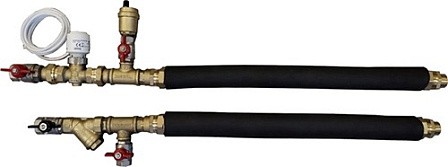 Узел регулирования включает (Двухходовой клапан, шаровый кран - 2шт, косой фильтр, воздухоотводчик, сливной кран, ниппель, тройник, разъемное соединение американка, соединительные подводки длинной 500мм)